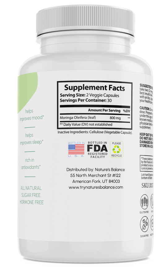 Moringa Oleifera brings you a boost of consistent energy, radiant skin, and the right amount of your daily dose of essential amino acids needed. Moringa Oleifera helps to work against aging, a weak metabolism, a poor skin complexion, lowered immune system, fatigue, and joint health and does all of this naturally.(Read label for all ingredients)*
