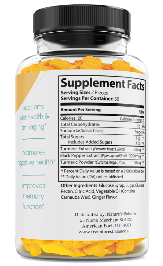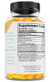 Turmeric Gummies is the best absorption method. Turmeric is a very powerful antioxidant and a natural detoxifier in your body. This one of a kind product will help improve joint soreness and promote joint, muscle, and body recovery. This product will also be able to give you better noticeable mobility and functionality that you can feel throughout your whole body. (Read label for all ingredients)*