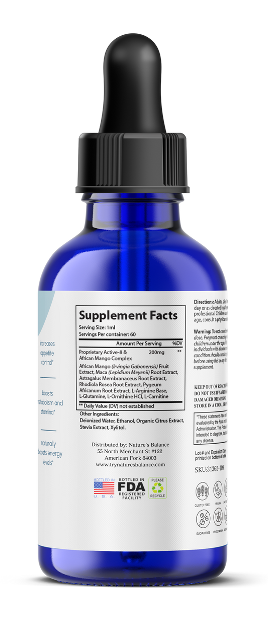 Begin your body transformation with Ultra Diet Drops formulated to help weight loss and help with your craving appetite. These drops are able to help eliminate sugar cravings and help turn your body into a smaller figure while helping to maintain the body's lean muscle. These one of a kind drops mixed with exercise will help you get the body you want. This is a natural way to lose weight and start your journey. This is a quality product that you can trust, works fast and effectively. This product can help burn fat and improve energy. (Read label for all ingredients)*